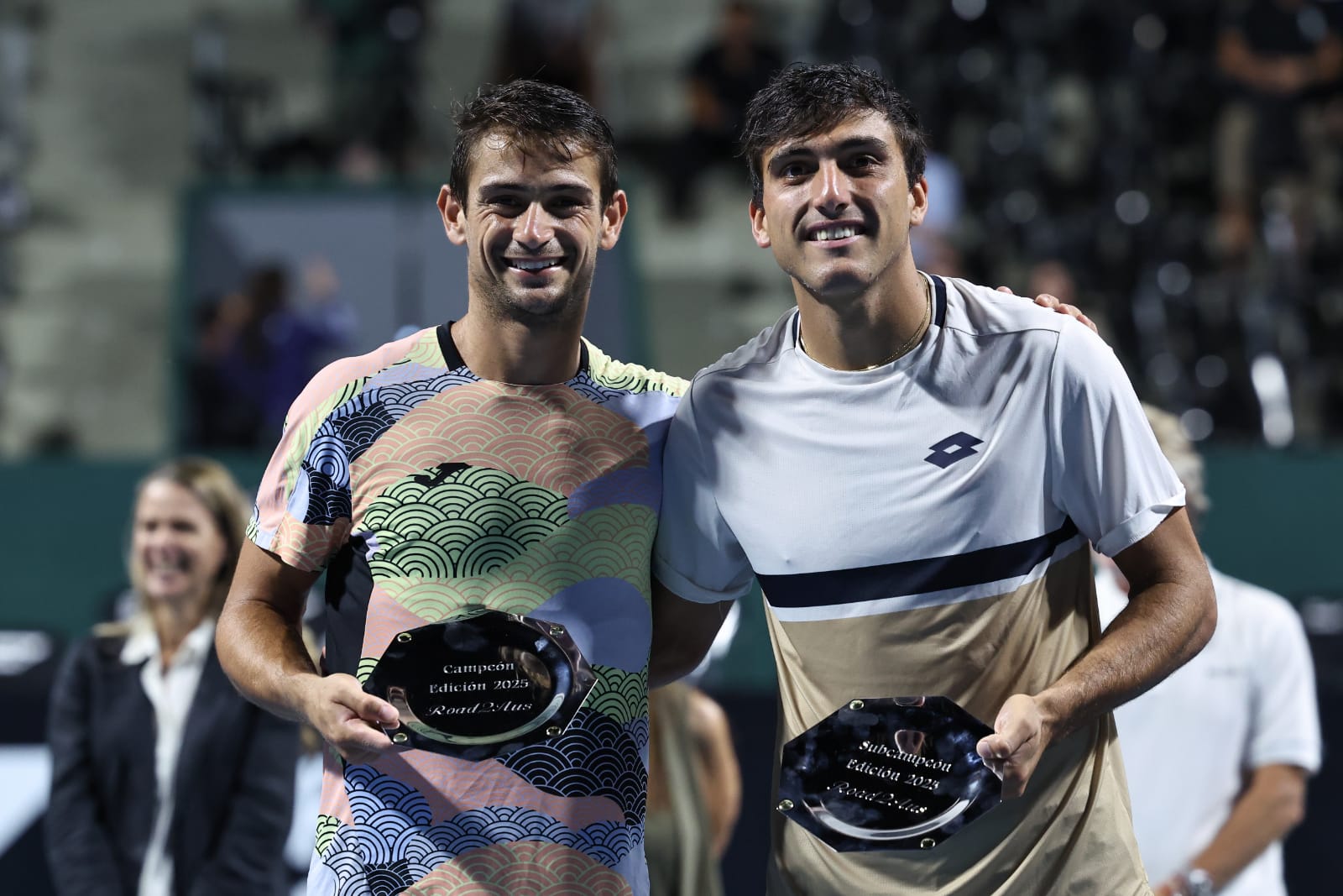 The awards ceremony featured Emiliano Serrano, Founder & CEO of WeGrow Sports and Director of Road2Aus, along with Andrés Schneiter, Co-Director of the tournament.